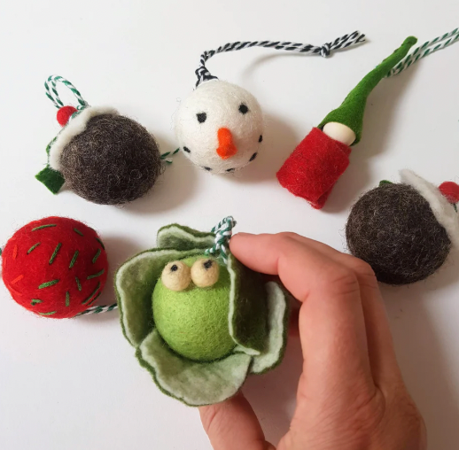Hand felted Brussel Sprout Christmas Decoration